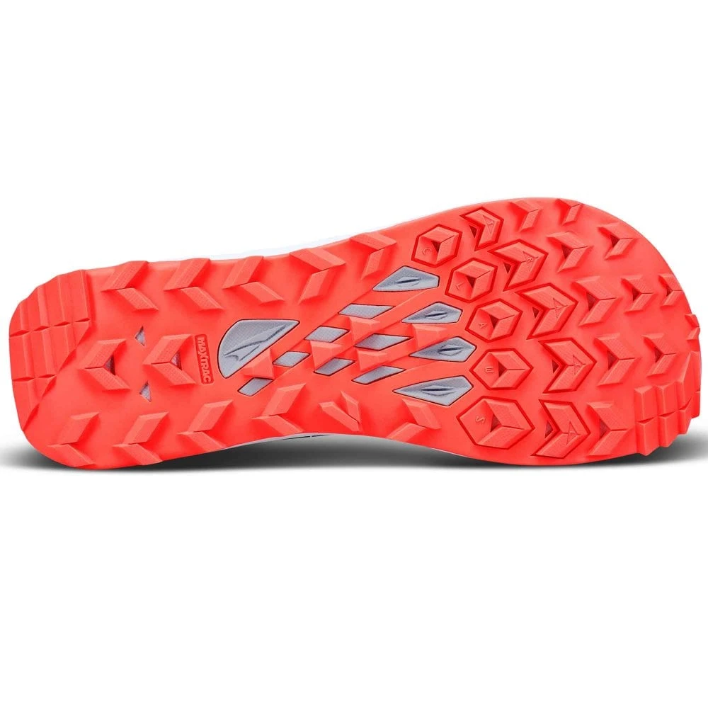 This is the women’s Altra Lone Peak 7 trail running shoe, with a Zero Drop heel to forefoot and a FootShape toe box. Both of these relatively ground-breaking technologies that make up the women’s Lone Peak 7 help to improve the trail runner’s form. A Zero Drop heel to forefoot drop trail running shoe encourages a mid-foot landing, compared with a somewhat traditional heel landing. A FootShape toe box, which feels much more roomy than many trail running shoes, which gives the foot room to function, expand after warming up and naturally cushion you upon landing.