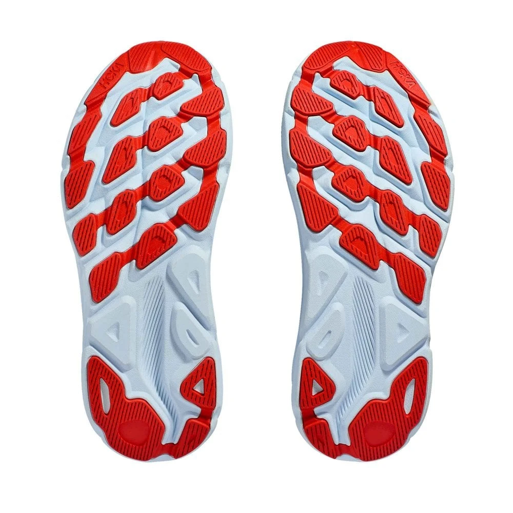 This is the men’s Hoka Clifton 9 running shoe, a well-cushioned everyday training shoe designed to feel plush, soft and light and features an updated more responsive Hoka cushioning. The men’s Clifton 9 comes with a little higher stack height (3mm extra) for even more comfort that will suit newer runners on their first training miles and experienced high-mileage runners on their longer runs and recovery runs.