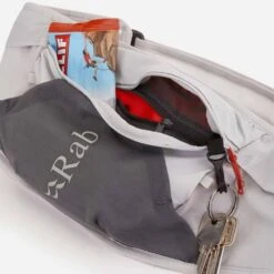 The belt features laser-cut holes for ventilation and can be secured using the hook and loop adjustment, keeping the pack stable while you’re pounding out miles. Tuck any waistbelt excess behind the integrated mesh pocket to ensure a low-profile fit when you need to keep things streamlined. There’s plenty of space for you to stash your snacks, gels and compass, with a zipped 1L lumbar pocket, three mesh stash pockets and 4 small webbing loops for personalised storage options. Keep your phone or key safe in the internal security pocket, for peace of mind when you’re pushing forward to the next summit.