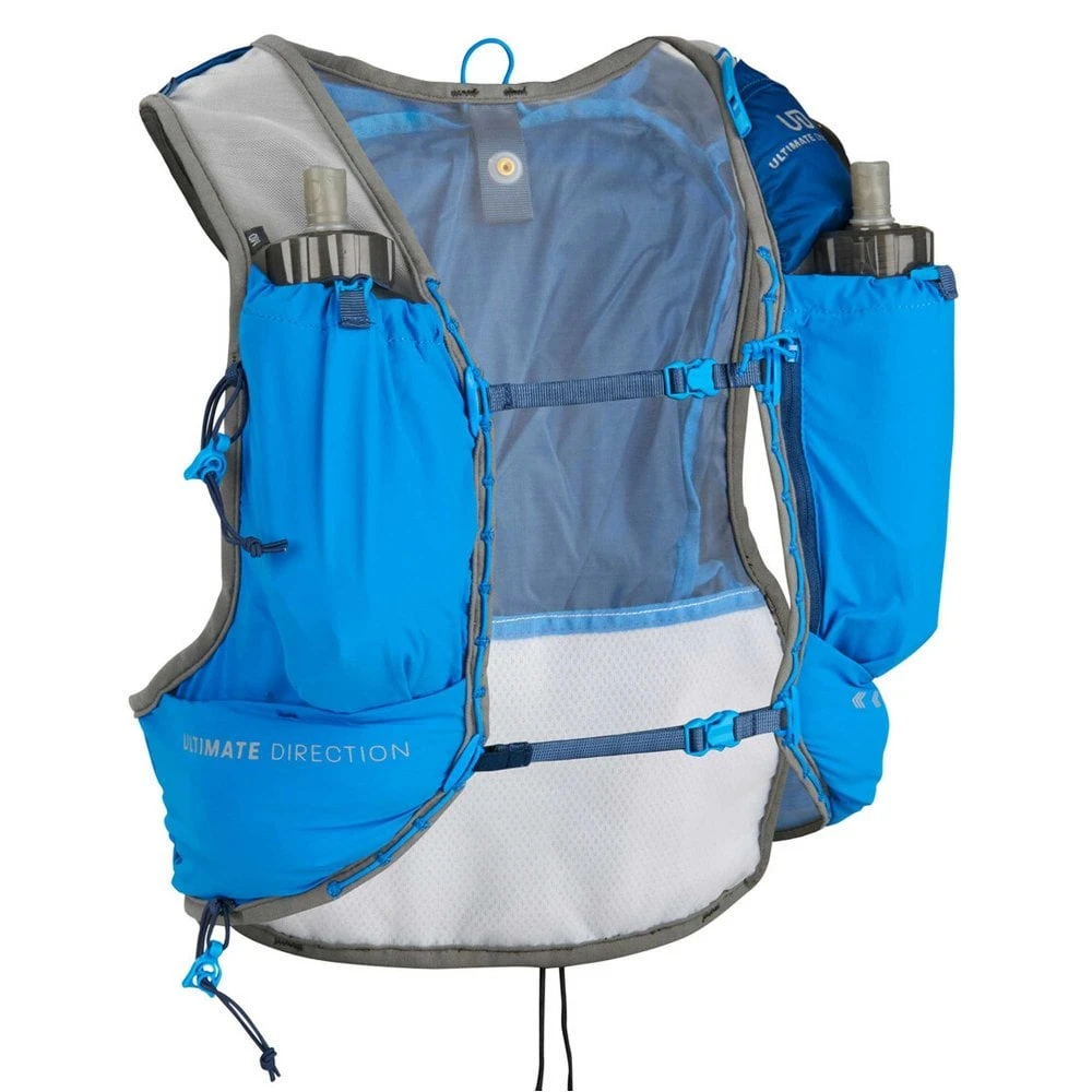 Bring your next ultra to the next level with a lightweight design specific for ultra running, featuring waterproof pockets and efficient details dedicated to long miles. The Ultra Vest uses the latest in fully customizable vest-fit technology with the ultra-durable Comfort Cinchâ„¢ 3.0 and protective mesh panels that prevent chafing over many miles. A roomier cut in the back and spacious arm holes provide a wider, taller fit for larger frames than our vesta version.